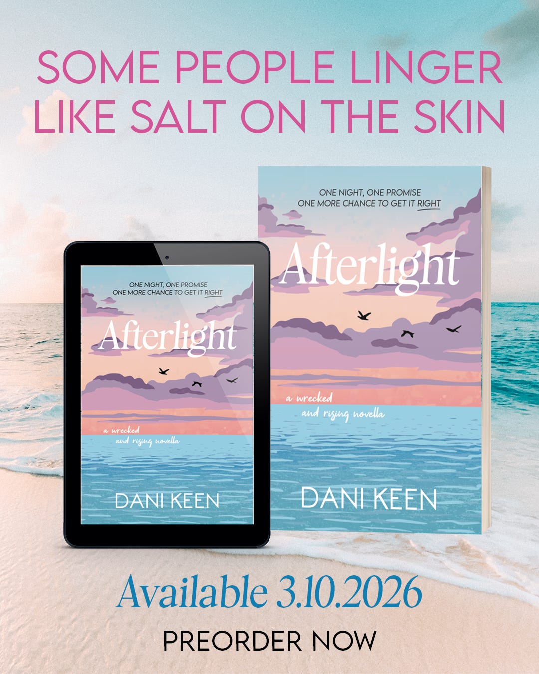 Afterlight releases on March 10, 2026, which gives you some time to read Wrecked & Rising if you aren’t caught up yet. And if you are wondering, yes you could read this as a standalone, but it’s better after you’ve had the full experience of Lena and Ash beforehand.